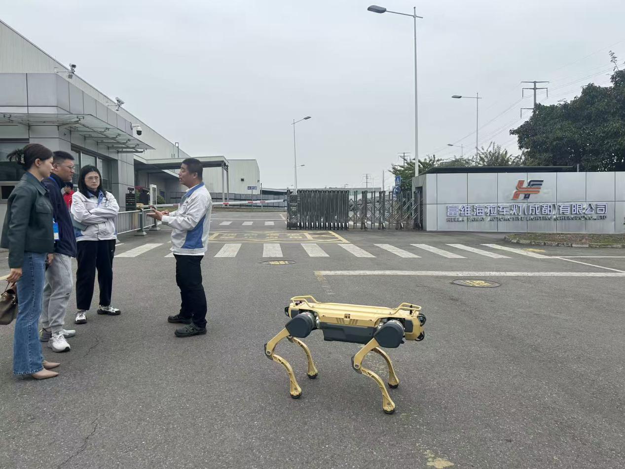 近日,服务站负责人在获悉富维海拉车灯(成都)有限公司存在检测机器人应用需求后,第一时间与企业深入沟通,细致梳理生产检测环节的痛点难点与预期目标。3月27日,该负责人牵头联动四川具身人形机器人科技有限公司,携带专业检测机器狗赴企业现场开展调研。团队实地走访生产车间,全面查看生产流程、检测标准及现有设备短板,围绕企业检测环节的堵点问题进行精准研判。