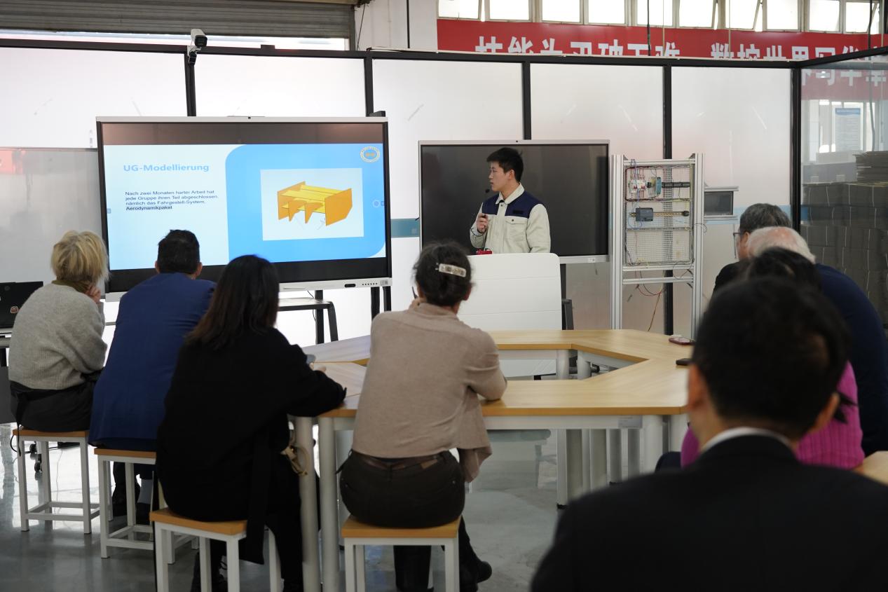 德方代表分别介绍了各自领域的情况。莱比锡孔子学院执行院长本杰明·克洛伊茨费尔特院长分享了莱比锡孔子学院在促进中德语言与文化交融方面的经验;吕肖职业培训学校副校长索菲亚·德克尔-斯沃博达则系统阐述了德国“双元制”职业教育体系的核心理念与运作模式。成都工贸—西南交大“中德班”西南交大教学团队负责人唐阳随后介绍了“中德班”的设置理念与未来规划,展现了高校与高职院校协同培养国际化人才的生动创新实践。