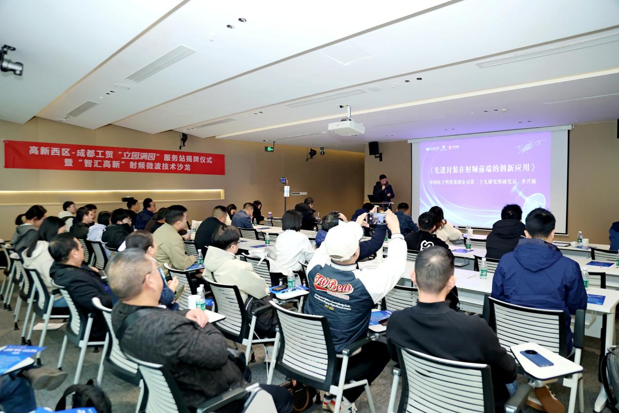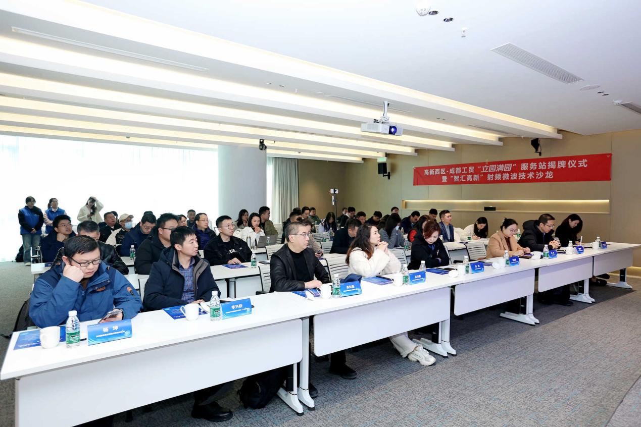11月18日,由四川省电子学会指导,四川省电子学会SMT/MPT专委会、成都工贸职业技术学院、成都高新电子科服公司等单位联合举办的“成都工贸职业技术学院高新西区‘立园满园’服务站揭牌仪式暨‘智汇高新’射频微波技术沙龙活动”在IC PARK西区举行。学校党委委员,计划财务与招投标管理处处长田琳出席活动。