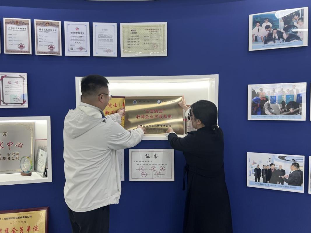 12月3日下午,轨道交通学院与成都运达科技股份有限公司共建的“教师企业实践基地”挂牌仪式如期举行。作为学校首个落地园区的教师企业实践基地,该基地的建成不仅是学校深化“立园满园”行动的重要里程碑,更是推进“工匠型双师”教师队伍建设与产教融合的关键举措。质量管理办公室负责人、轨道交通学院相关负责人以及师生代表与成都运达科技股份有限公司相关负责人共同见证了这一重要时刻。