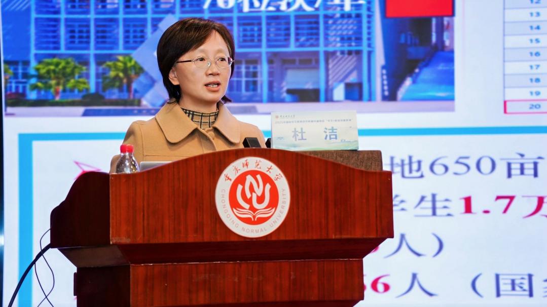 12月4日,由重庆师范大学主办的2025年国际中文教育协作机制川渝地区“中文+职业技能教育”主题研讨会在重庆召开。教育部中外语言交流合作中心、川渝两地教育主管部门代表、重庆市国际中文教育协作机制成员单位,以及川渝31所高校和职业院校的校领导、专业带头人、专家学者、“中文+职业技能”项目负责人等82位嘉宾齐聚,共同探讨“中文+职业技能教育”融合发展路径。我校党委委员、副校长杜洁受邀出席,以《精准对接 把专业建在产业链上——成都工贸专业优化改革的实践探索》为题作主题发言,分享学校专业建设、产教融合与“中文+职业技能教育”的创新实践与丰硕成果。