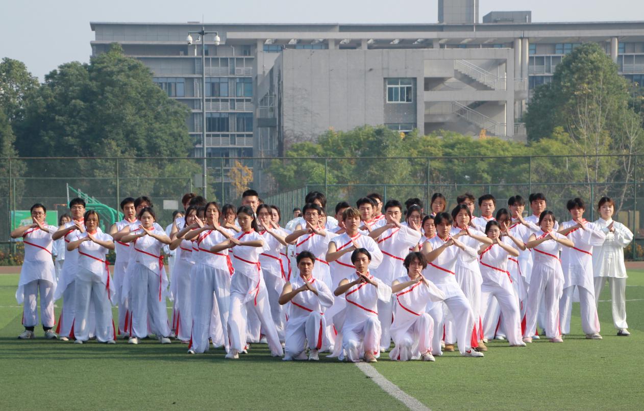 12月10日下午,我校“以武会友,以德修身”2025年太极拳比赛在总院田径场举行。学校党委书记王涛,副校长李维出席,党政办公室、党委学工部(学生处)、通识教育学院负责人、郫都区社会体育指导员协会会长与师生代表共同参加了本次活动。