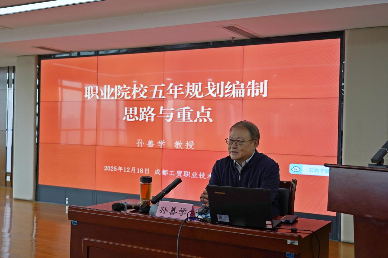 12月18日,学校“十五五”发展规划编制工作专题会议在D1408会议室召开。会议邀请了教育部教育强国建设战略咨询委员会委员、教育部教育数字化专家咨询委员会委员、中国高等教育学会常务理事、北京外国语大学教授、天津大学职业技术教育研究所所长、博士生导师孙善学教授,作《职业院校五年规划编制原则与重点》专题讲座。学校党委书记王涛主持会议,党委领导班子、各部门班子成员和规划编制骨干教职工参加会议。