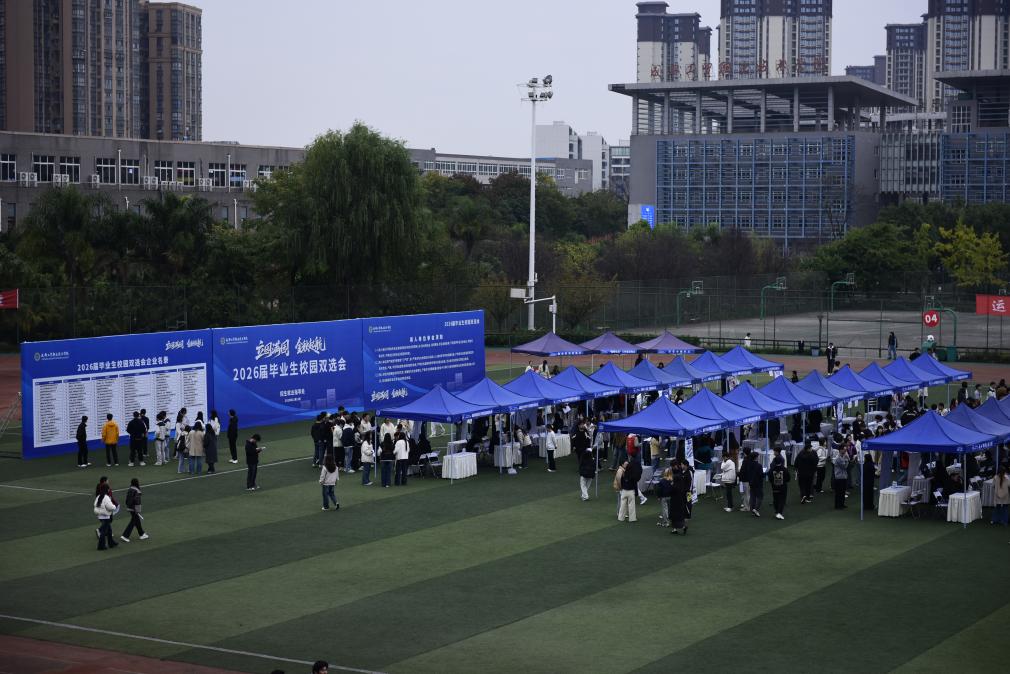 为有效促进学校毕业生人才资源与产业园区企业供需对接,11月13日上午,学校举办了“立园满园 金秋起航”2026届毕业生校园双选会,向成都市各产业园区企业推介学校高素质技术技能人才。学校党委副书记、校长陈大勇深入双选会现场调研指导,招生就业指导处负责同志参与调研。双选会现场,陈大勇与企业来宾亲切交流,他向企业长期以来对学校就业工作的大力支持致以诚挚感谢,并详细了解企业经营规模、招聘需求、薪资待遇和未来发展前景等。陈大勇现场查看了学生的简历、所获荣誉等求职资料,提出详实的指导意见,他殷切叮嘱学生们要明确自己的职业定位以及今后的职业发展,要励志成才,在技术技能上不断突破,锻造成长为国家栋梁人才。双选会现场设立了就业政策咨询点、“路晰生涯”工作室咨询点,为求职学生提供政策咨询、简历诊断、职业咨询、就业指导等贴心服务。同时邀请到郫都区就业服务中心相关人员现场为求职学生宣传地方就业政策,中心副主任蔡昌林表示,感谢学校每年为地方企业输送了大批高素质技术技能人才,有效支撑了产业集群高质量发展。据悉,本