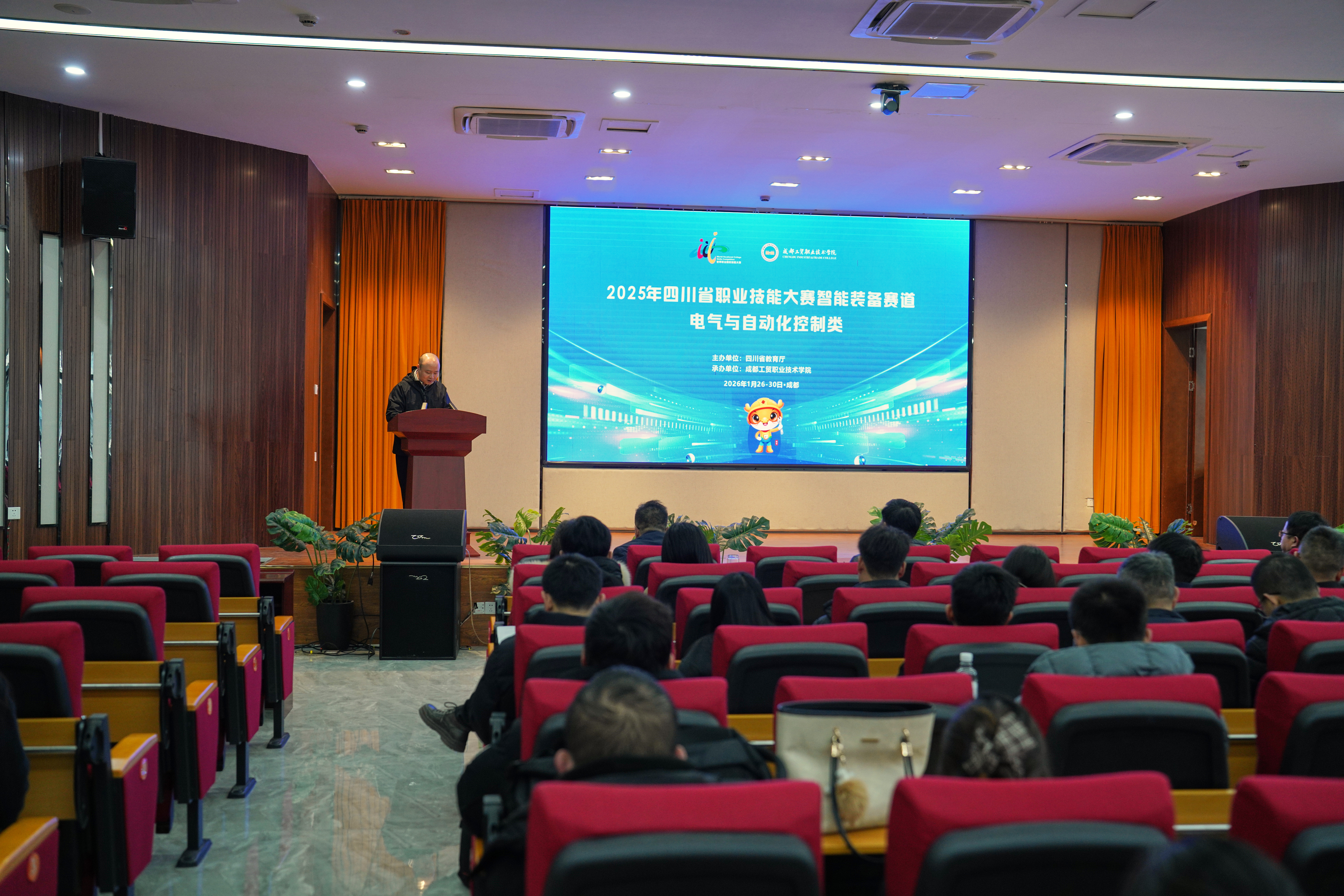 1月26日-1月29日,由四川省教育厅主办、我校承办的“2025年四川省职业院校技能大赛智能装备应用赛道高职组(第一组)电气与自动化控制类”比赛成功举办。本次大赛以“技炫青春 能创未来”为主题,聚焦智能制造前沿技术,吸引全省21所院校、百余名选手参与角逐,充分展现四川省职业教育在智能装备领域的教学成果与创新活力。作为世界职业院校技能大赛体系的重要组成部分,本次大赛深度践行“以赛促学、以赛促教”理念,采用线下实战模式,要求参赛队伍在1小时内完成项目的关键技能操作并进行讲解,全面考核选手的技术应用能力、创新能力、团队协作能力与职业素养。为确保赛事公平、公正、顺利进行,本次比赛在监督仲裁组全程监督,严格执行两次加密抽签制度,对参赛队伍身份信息进行匿名化处理,并由专业裁判团队依据统一标准进行评审。整个赛程组织严密、流程规范,从设备调试、赛场保障到应急处理,各环节衔接有序。本次大赛紧密对接智能装备产业发展需求,通过实战竞技推动职业院校课程改革与校企合作。世界职业院校技能大赛标识“技宝”所倡导的“
