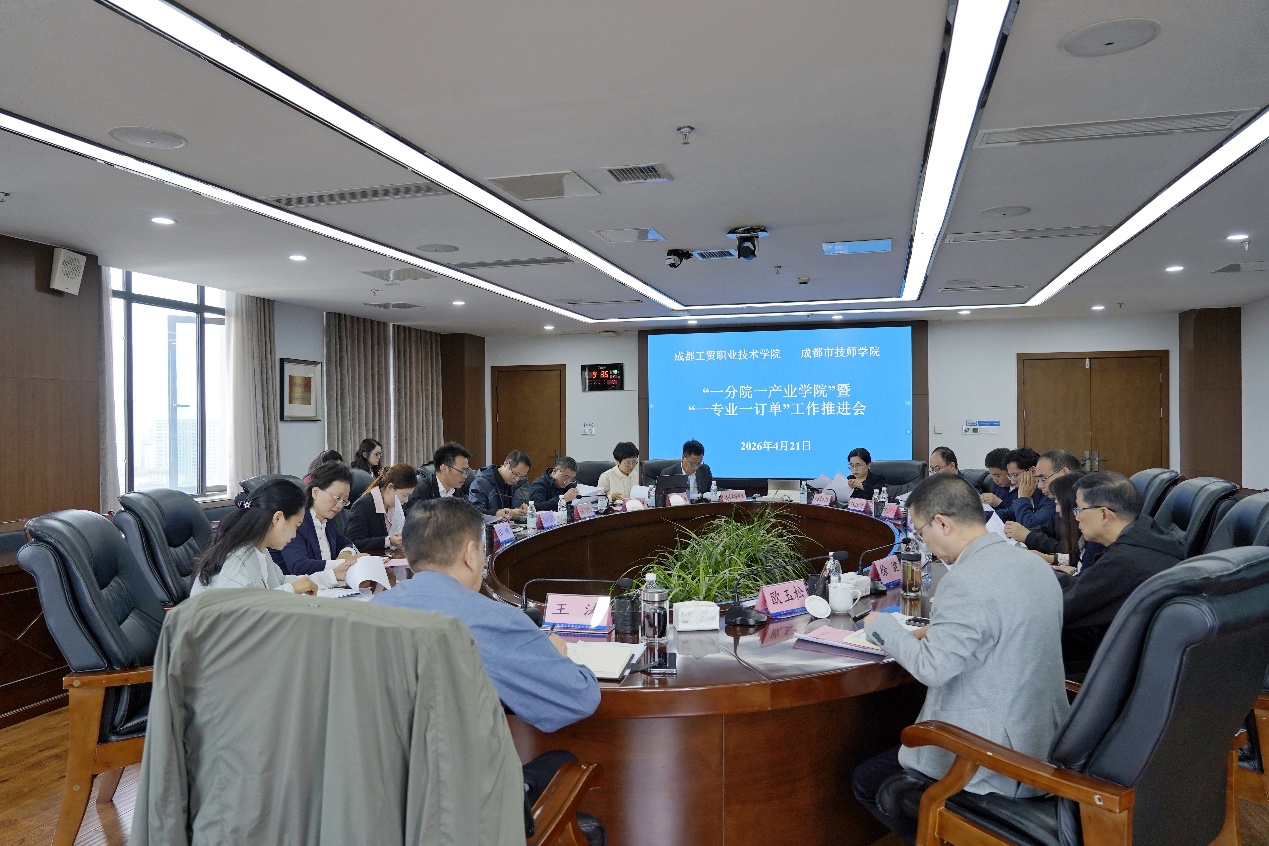 4月13日下午,广州科技贸易职业学院党委书记、校长蒋新革率队来校调研交流。学校党委书记王涛热情接待来访一行并主持召开座谈会,党委委员、副校长杜洁及相关部门负责同志参加会议。会上,王涛对蒋新革一行的到访表示热烈欢迎,并详细介绍了学校的发展历史沿革、办学规模、专业建设、师资队伍,以及近年来在产教融合、技术技能人才培养等方面取得的成效。蒋新革对我校的热情接待表示感谢,介绍了广州科技贸易职业学院的基本情况及发展思路。双方围绕产教融合校企合作、技术技能人才培养、国际交流合作等内容开展了深入交流。会前,蒋新革一行参观了学校四川省工业机器人虚拟仿真实训中心、世界技能大赛数控铣中国集训基地、机加车间、焊接实训室、轨道交通实训室以及科教融汇中心。