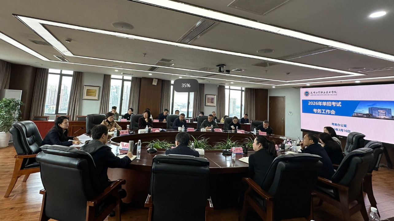 3月16日,我校召开2026年高职单独招生考试考务工作推进会。学校党委副书记、校长杨莉,党委委员、副校长杜洁出席会议,相关职能部门及各教学单位负责人参会。杨莉强调,高职单招是国家教育考试的重要组成部分,事关考生前途和社会公平,必须以“零差错、零事故”为硬性目标,全面对标省考试院要求,扎实推进各项准备工作。她提出三点要求:一要提高政治站位,思想认识到位。要站在“为党育人、为国选才”的高度,深刻认识单招考试的严肃性,树牢全校“一盘棋”思想,杜绝任何侥幸心理,确保考试各环节环环相扣、严丝合缝。二要责任链条清晰,压力传导到位。。严格落实“一把手”负责制,将责任清单转化为落实清单,形成闭环管理机制,确保突发情况第一时间响应、跨部门高效协同联动。三要考生服务暖心,考风考纪从严。既要用心用情优化考生服务,完善考场指引、医疗保障、饮水供应等细节安排,又要严格执行入场安检、身份核验、视频监控等制度,坚决守住公平公正底线,让考试既有温度又有力度。杜洁传达了省教育考试院考务工作会议精神,并就落实工作提出具体要