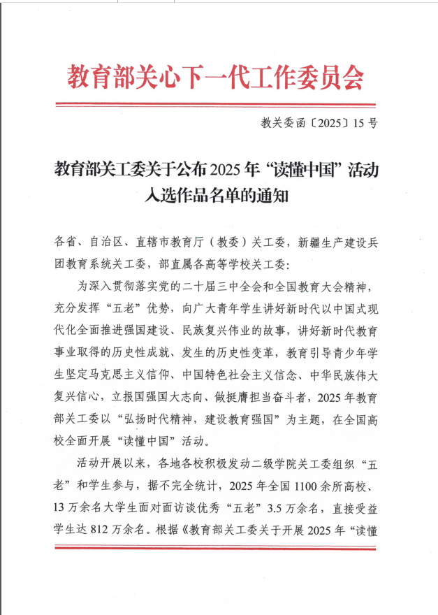 我校荣获2025年“读懂中国”活动“表扬单位”称号及优秀微视频奖