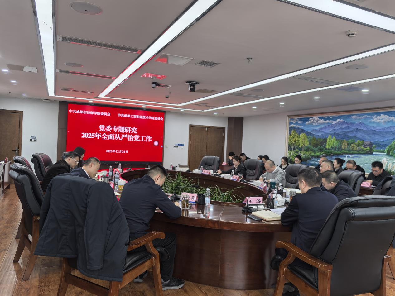 12月24日下午,学校党委专题研究2025年全面从严治党、党员教育和基层党支部建设工作。学校领导班子出席会议,各党总支、直属党支部书记、各单位负责人参加会议,会议由党委书记王涛。王涛指出,我校今年全面从严治党各项任务落实规范有效,班子成员履职尽责,各部门协同合作,扎实推动全面从严治党向纵深发展、向基层延伸,党建工作取得了良好成效。必须坚决不折不扣落实习近平总书记重要指示精神,始终保持坚定的目标、清晰的头脑、旺盛的战斗力,持之以恒纵深推进全面从严治党,为学校新双高申报和建设提供根本保障。王涛强调,一是坚持创新思维,着力在提升社会影响力上发力。要敢于在党建载体上创新,打造实景课堂,开发系列微党课,多维度创设展示平台,增强学习的吸引力与有效性,让外界真切感受到学校党建工作的时代气息与蓬勃活力。要敢于在服务模式上创新,推行“党建+项目”模式,在跨部门协作的重大任务、重大项目中设立临时党支部或党员突击队,构建“党员服务网格”,发挥好学生社区功能型党支部作用,让党旗在攻坚一线高高飘扬,推动党组织和党